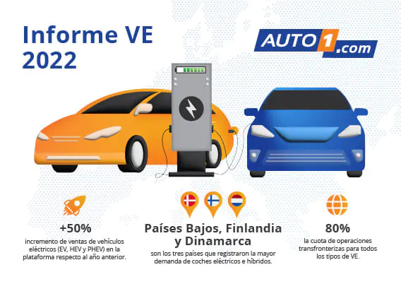 De VE basado en el análisis de datos propios y en su encuesta anual entre más de 15.000 socios profesionales. Según se desprende de este informe, AUTO1.com ha registrado un crecimiento año a año de más del 50% en el comercio de vehículos eléctricos de batería (BEV), híbridos enchufables (PHEV) e híbridos (HEV), alcanzando las 18.000 unidades vendidas en 2022, 6.500 más que el año anterior. Estas cifras confirman la tendencia de que el vehículo eléctrico se está introduciendo gradualmente en el mercado de coches de segunda mano.