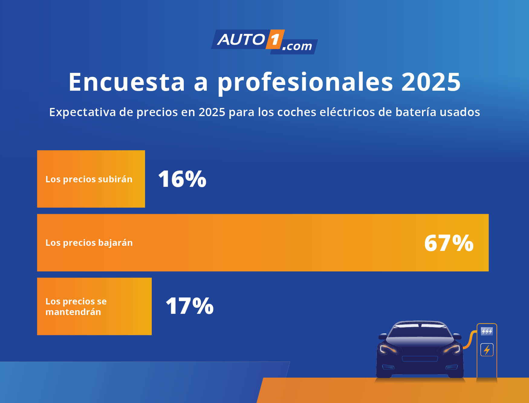En cuanto a los precios de los vehículos eléctricos de batería, solo dos de cada tres concesionarios y profesionales europeos (67%) esperan que bajen, mientras que el 17% cree que se mantendrán estables. Por el contrario, el 16% aún espera que los precios de los coches eléctricos de batería usados aumenten este año.