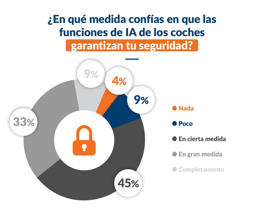 El 87% de los encuestados españoles confía en cierta o gran medida en que las funciones de IA de los coches pueden garantizar su seguridad mientras que sólo un 13% expresa poca o ninguna confianza.