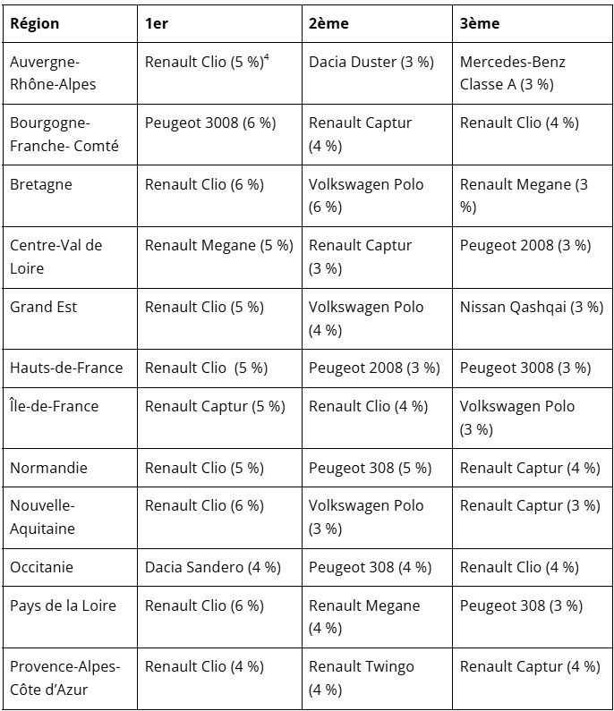 Concernant les types de carrosserie les plus sollicités, les Français maintiennent leur préférence pour les SUV (39 %), les citadines (29 %) et les berlines (17 %). Ce podium est commun à toutes les régions françaises, à l’exception de la Bretagne où les citadines sont sur la première marche, suivies par les SUV, puis par les berlines.